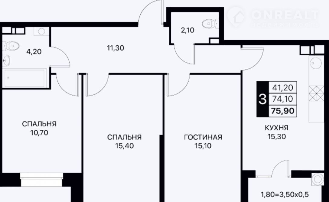 Общая площадь 75.9 м2