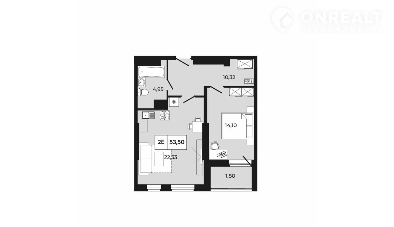 Кухня-гостиная: 22.33 м2