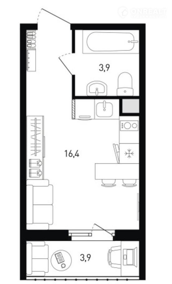 Общая площадь 22 м2