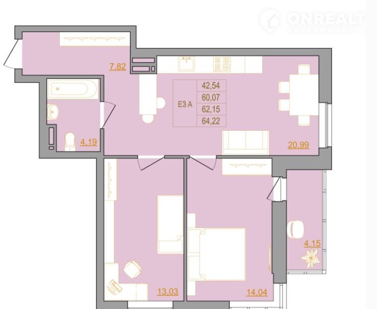 Общая площадь 64.6 м2