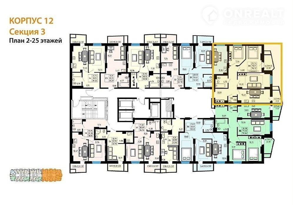 3-комнатная квартира, 76.7 м2, этаж 6 / 25, на продажу в Ростове-на-Дону, улица 23-я Линия, 54с12