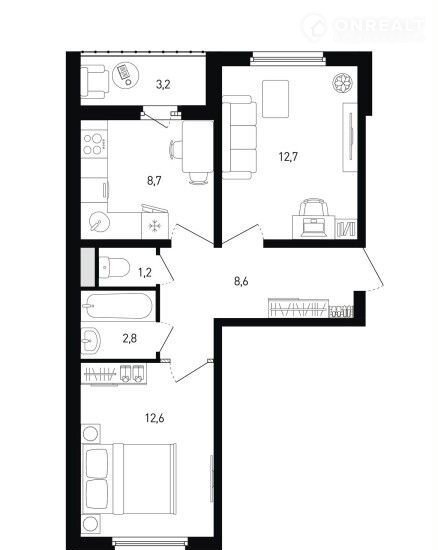 Общая площадь 48 м2