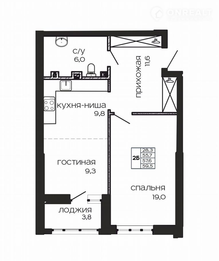 Общая площадь 60.3 м2