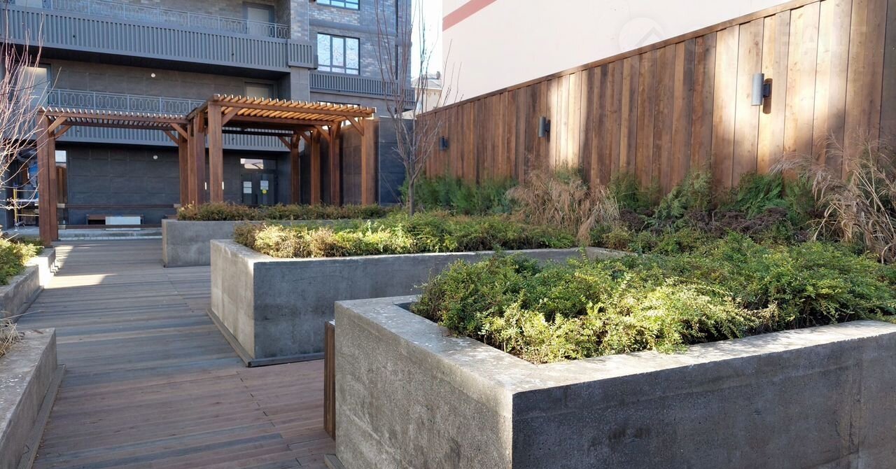 • Ландшафтный дизайн внутреннего пространства, зоны отдыха из природных материалов для жителей всех возрастов