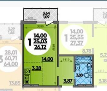 Балкон, лоджия 1 лоджия