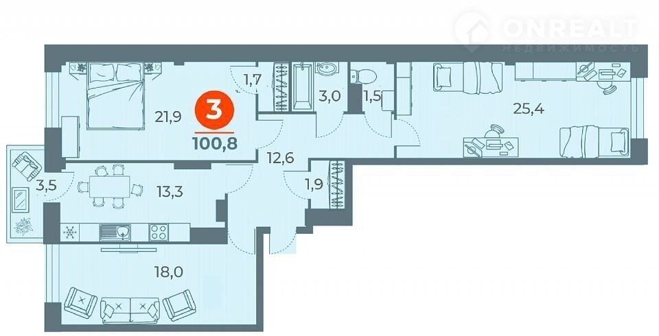 Общая площадь 102.1 м2