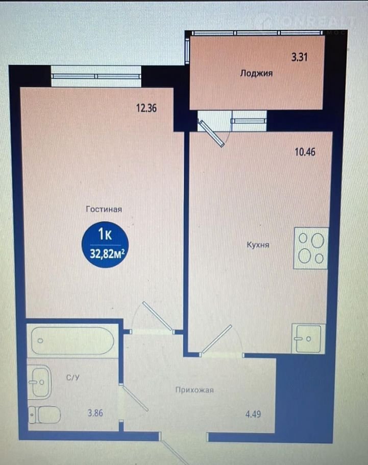 Балкон, лоджия 1 лоджия