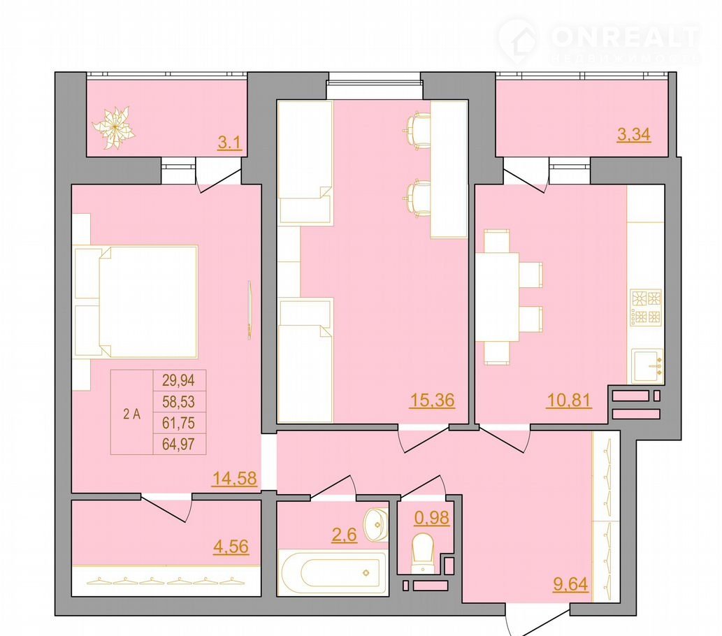 Общая площадь 65.8 м2