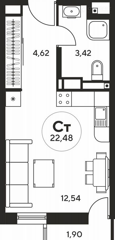 Общая площадь 22.5 м2