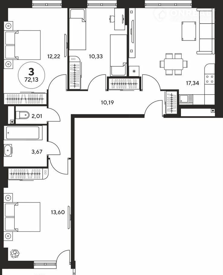 3-комнатная квартира, 72 м2, этаж 3 / 25, на продажу в Ростове-на-Дону