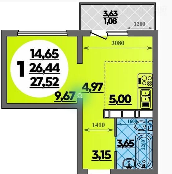 Общая площадь 27.6 м2