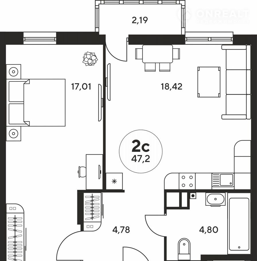 Общая площадь 47.2 м2