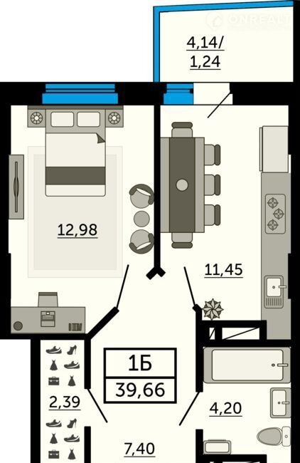 Общая площадь 39.7 м2