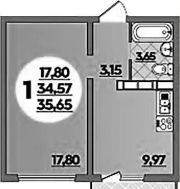 Общая площадь 35.7 м2