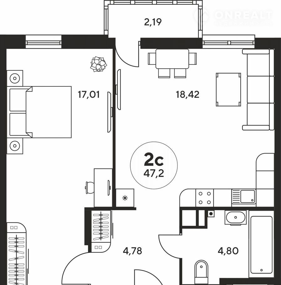 Общая площадь 47 м2