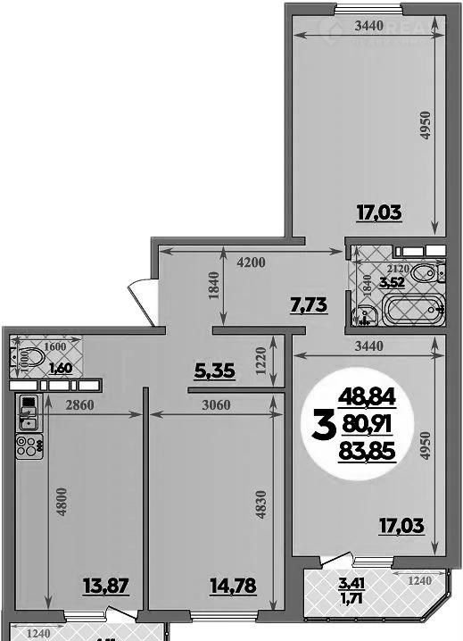 Общая площадь 83.9 м2