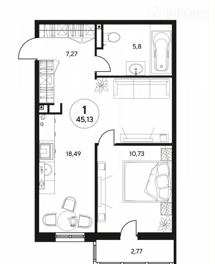 Общая площадь 45.1 м2