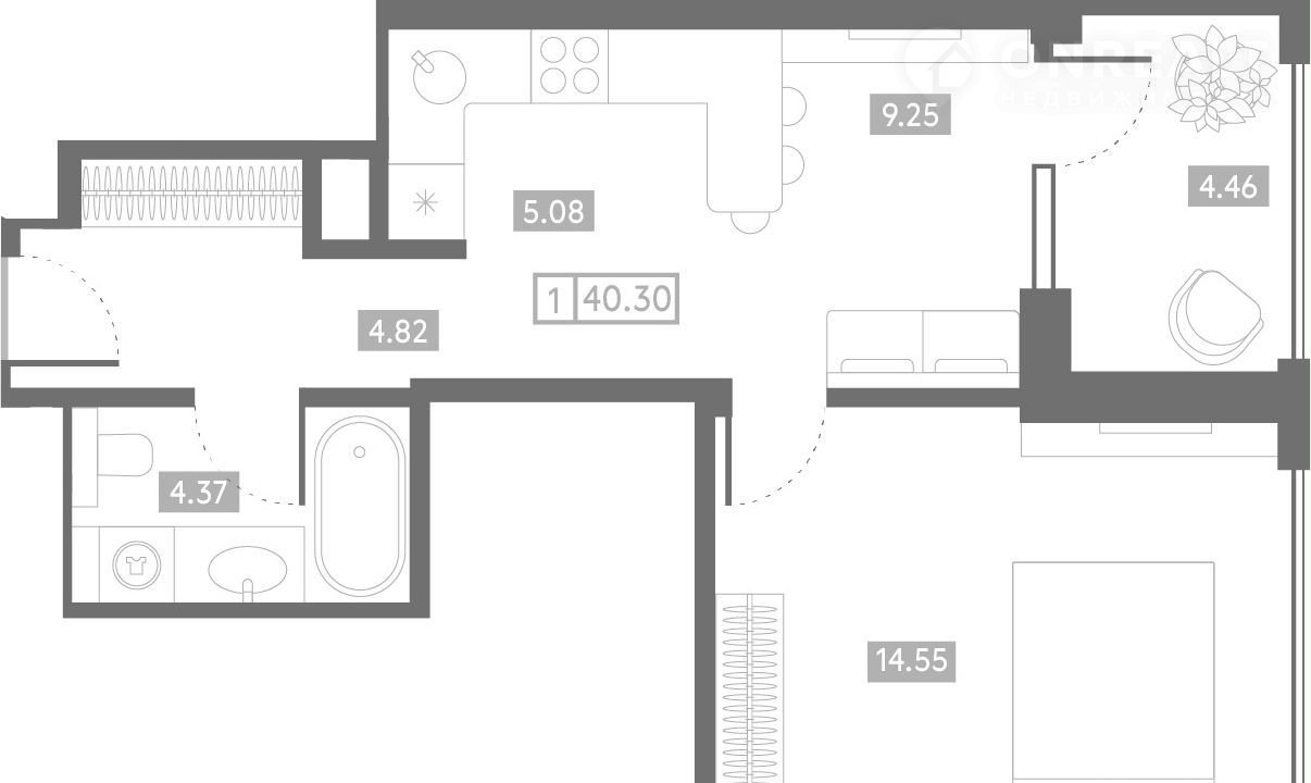 Общая площадь 40.3 м2