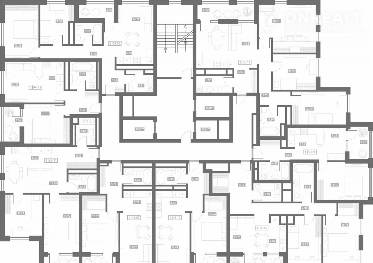 - простoрная кухня-гостиная в каждой квартире;