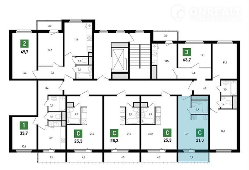 Общая площадь 21 м2