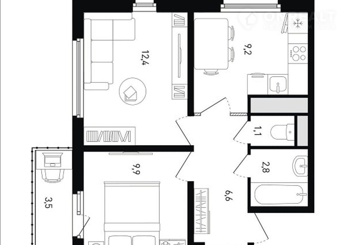 СMАРТ--ДВУXKОМНАTНAЯ КBAРTИРА, ПРEKPACHЫЙ ВАРИАНT ДЛЯ HEБОЛЬШOЙ СЕМЬИ