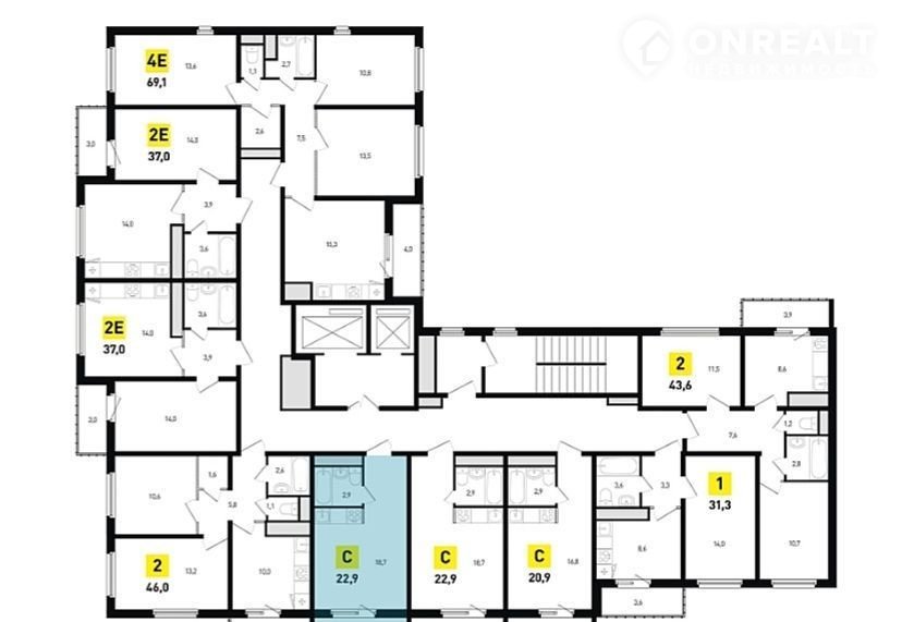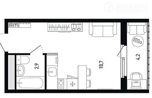 Общая площадь 23 м2