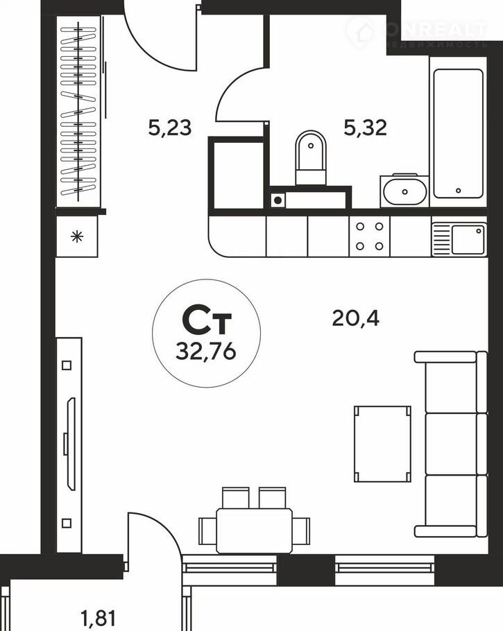 Общая площадь 32.7 м2