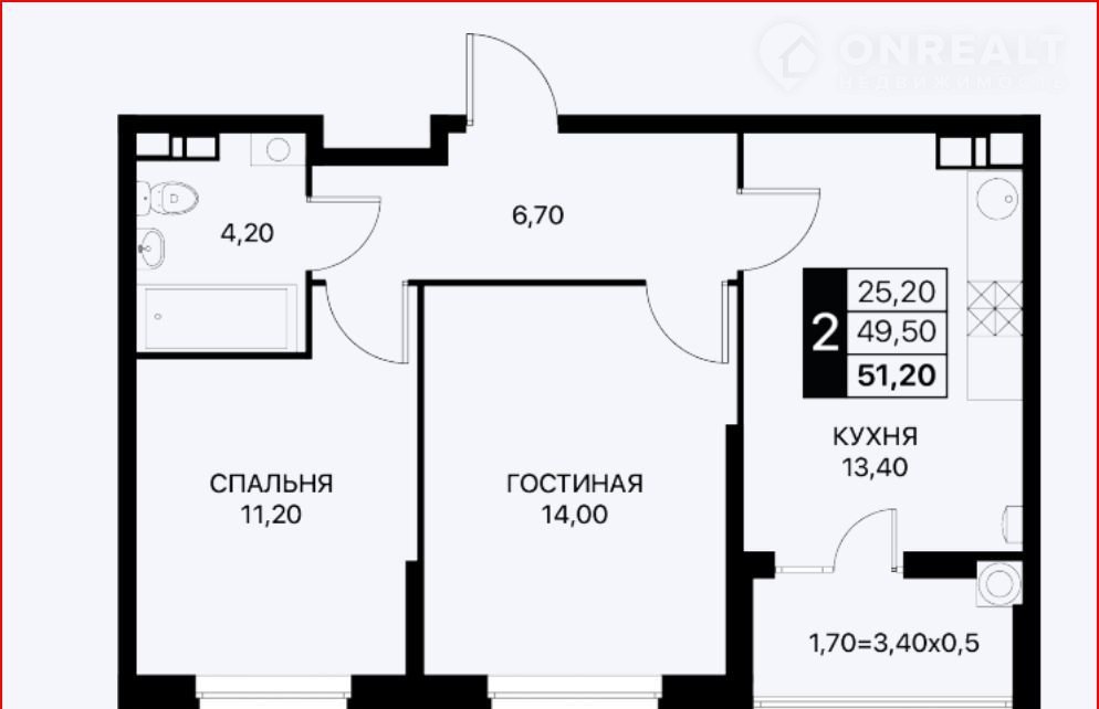 Общая площадь 50 м2