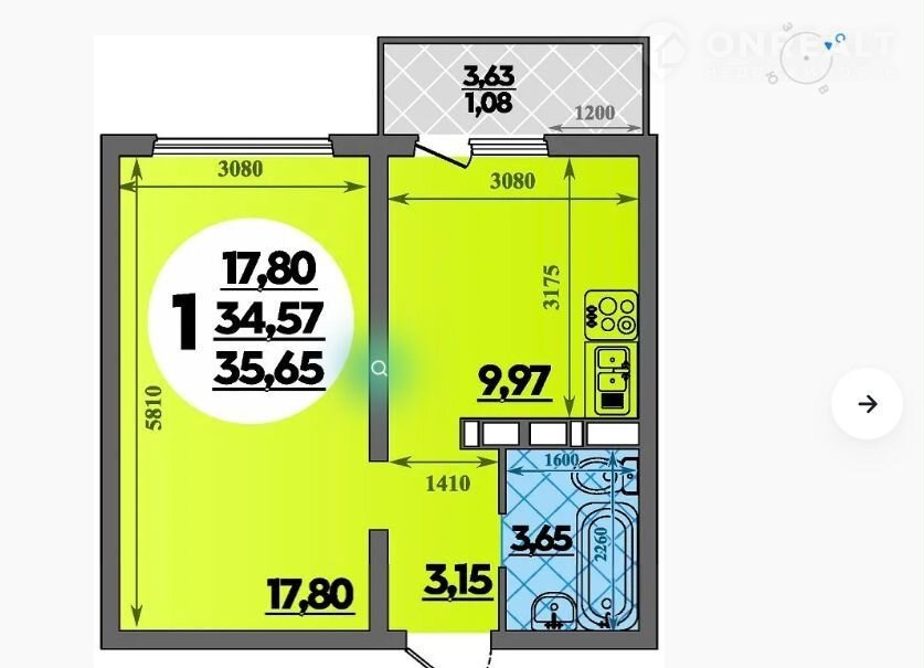 Балкон, лоджия 1 балкон
