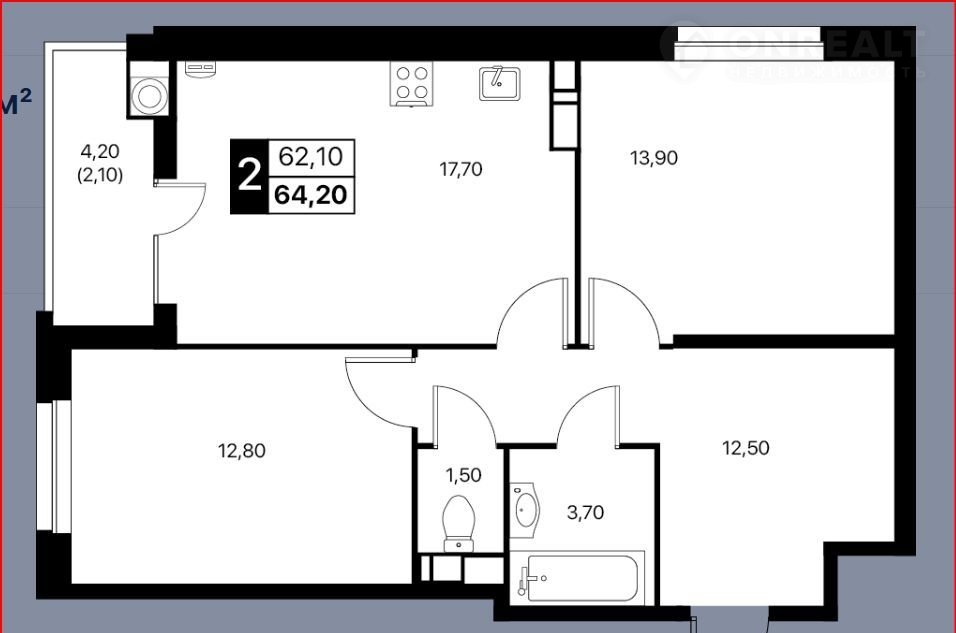 Общая площадь 64 м2