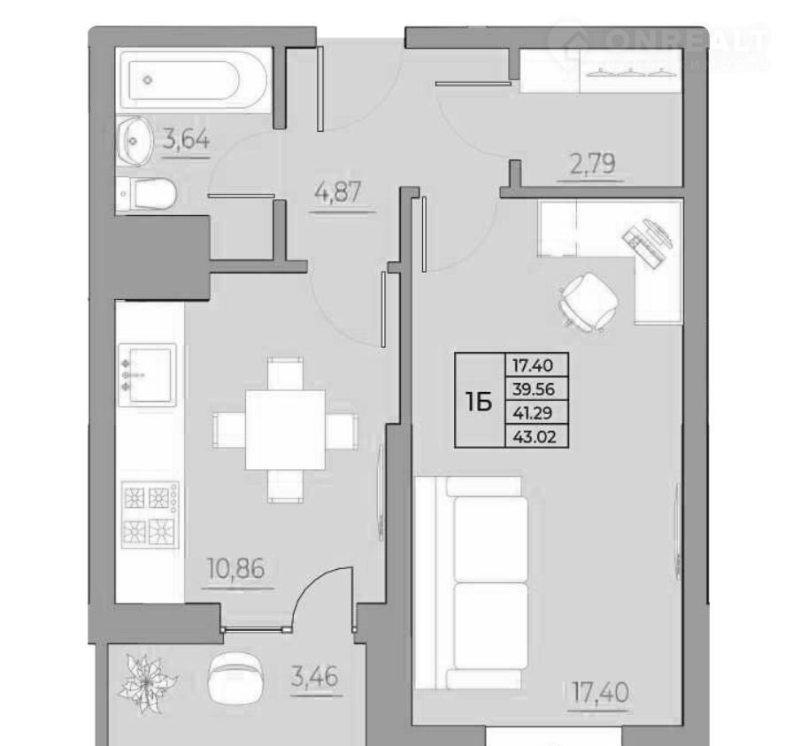 Общая площадь 43 м2