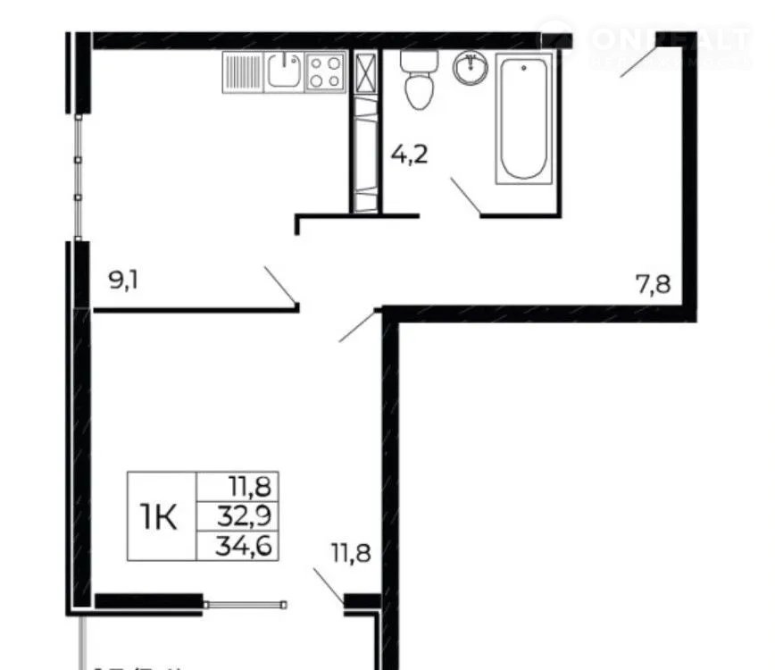 Общая площадь 34.8 м2