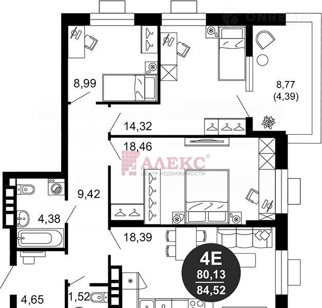 Общая площадь 80.1 м2