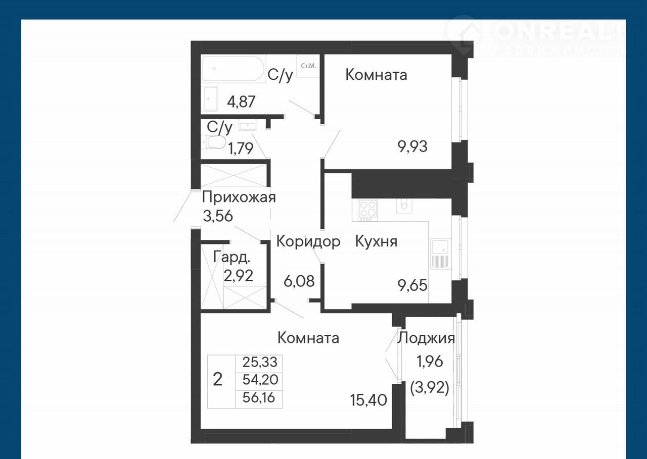 Общая площадь 56.2 м2