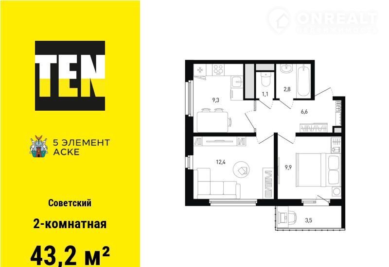 Общая площадь 43.2 м2