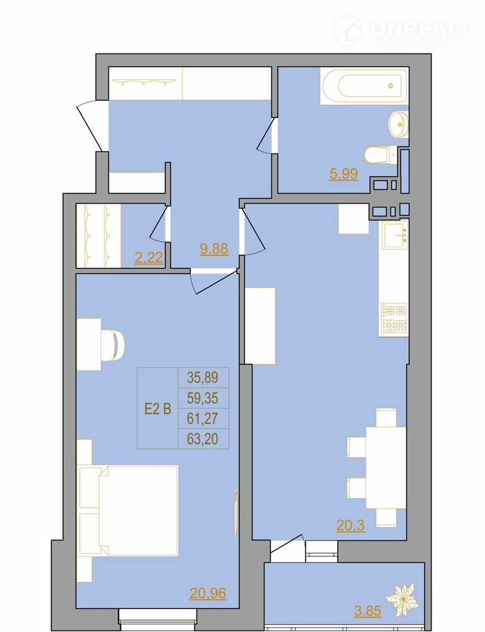 Общая площадь 63.5 м2