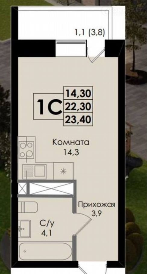 Общая площадь 23.4 м2