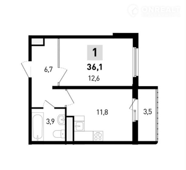 Общая площадь 36.1 м2