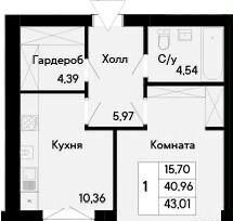 Общая площадь 43 м2
