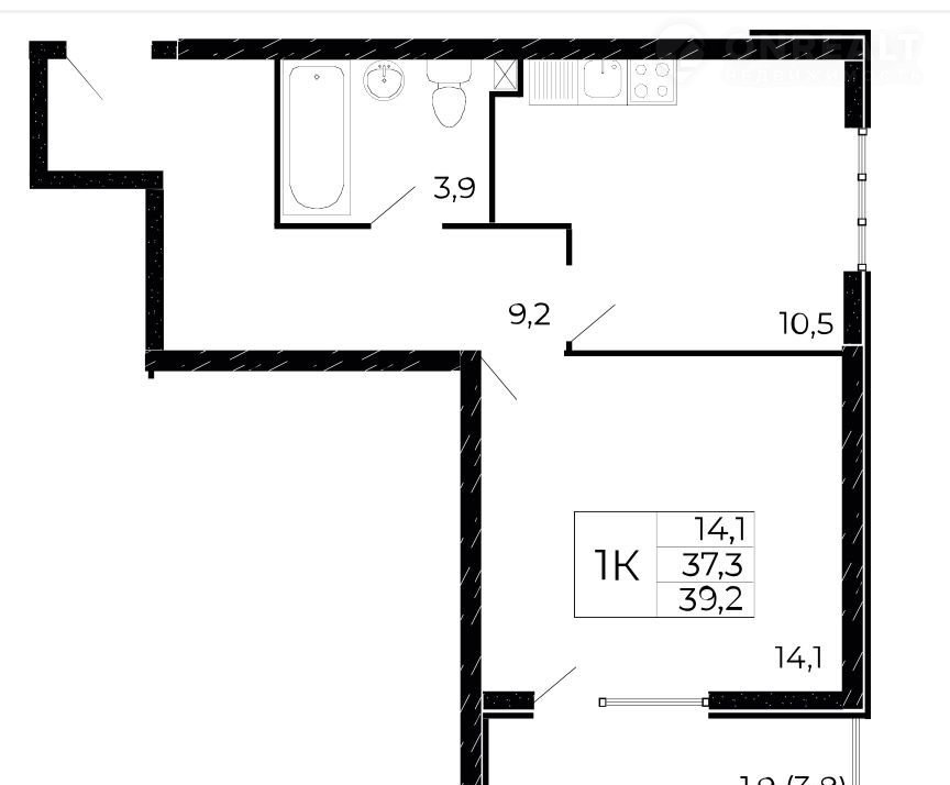 Общая площадь 39 м2