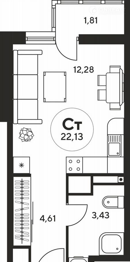 Общая площадь 22.1 м2