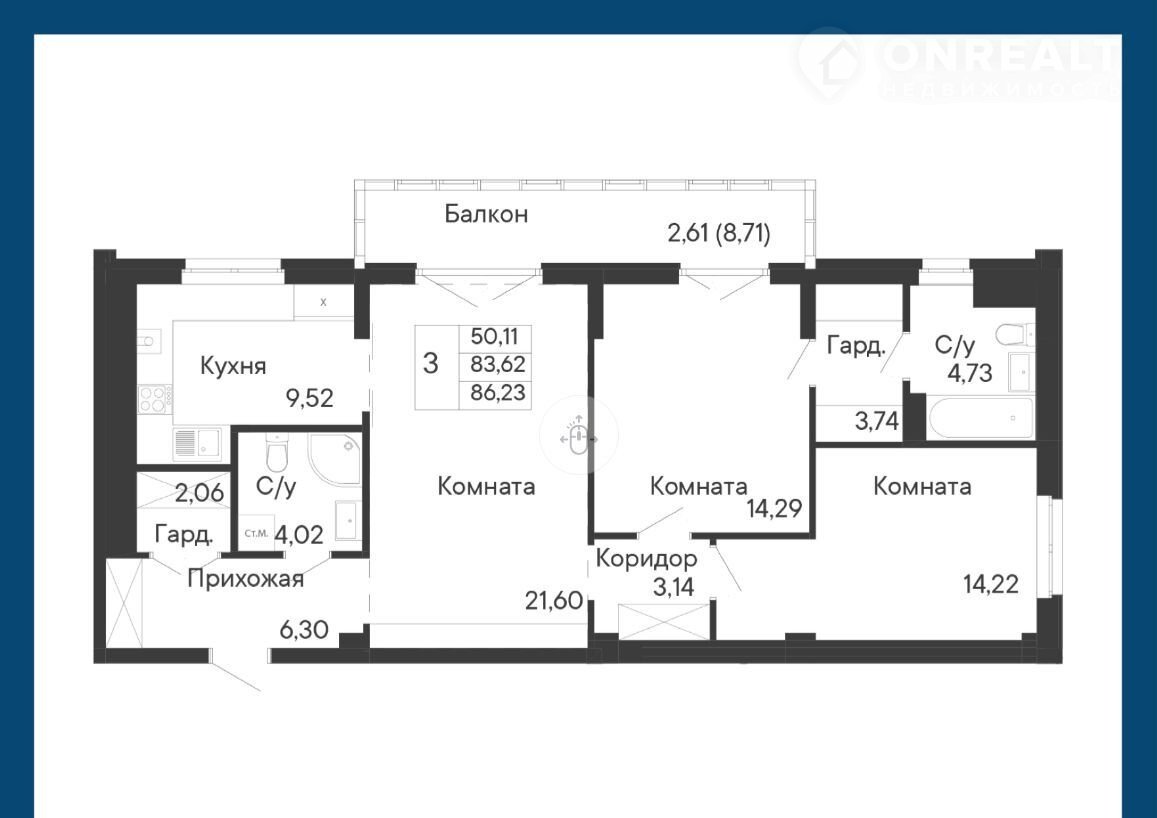 Общая площадь 86.2 м2