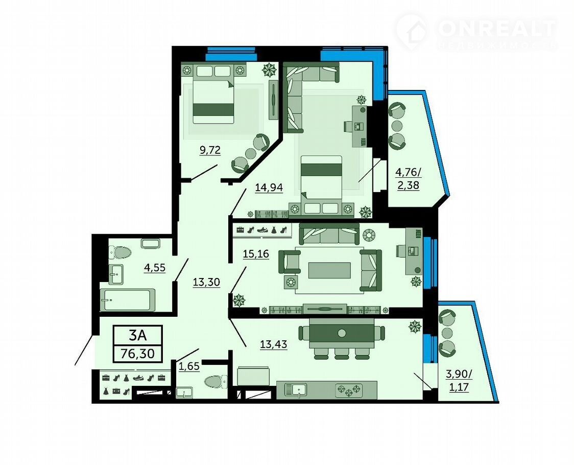 Общая площадь 79 м2