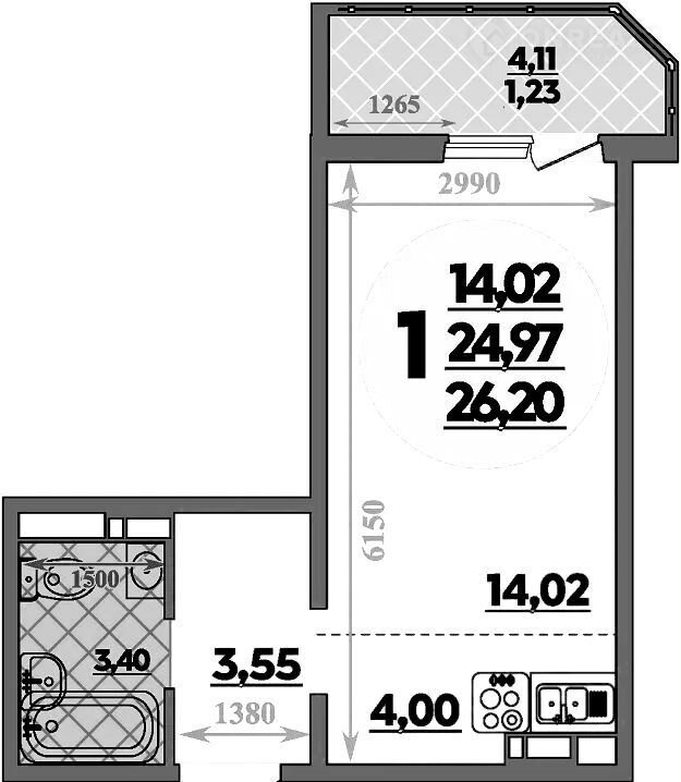 Общая площадь 26.2 м2