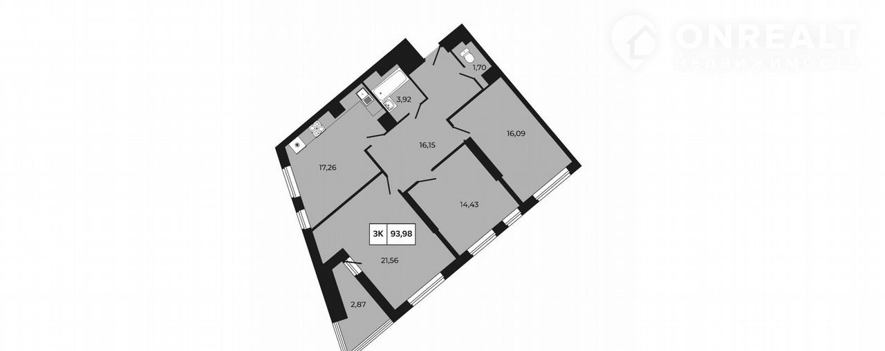 Площадь квартиры 93.98 м2