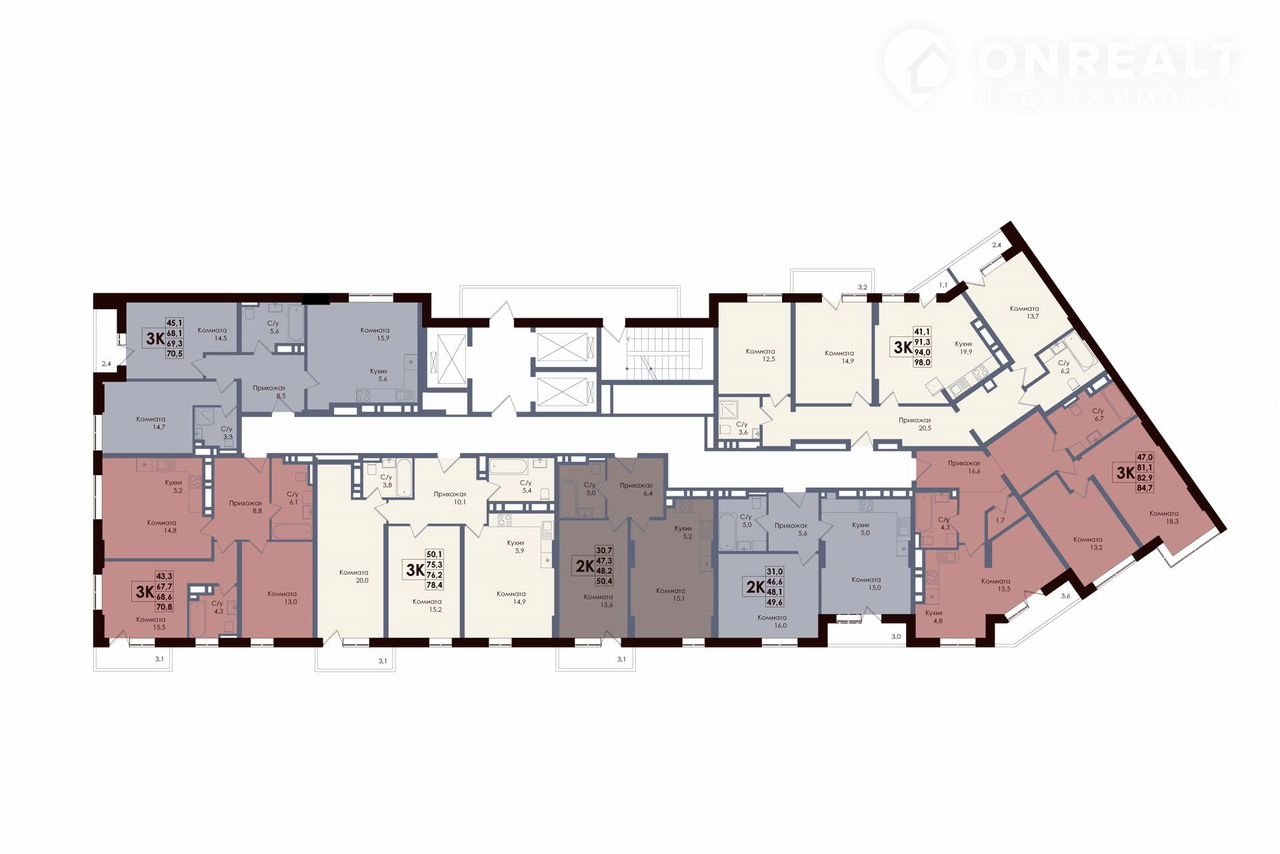 Общая площадь 68.6 м2