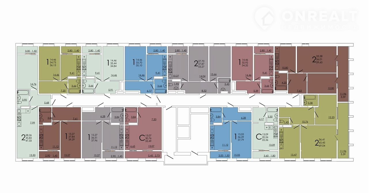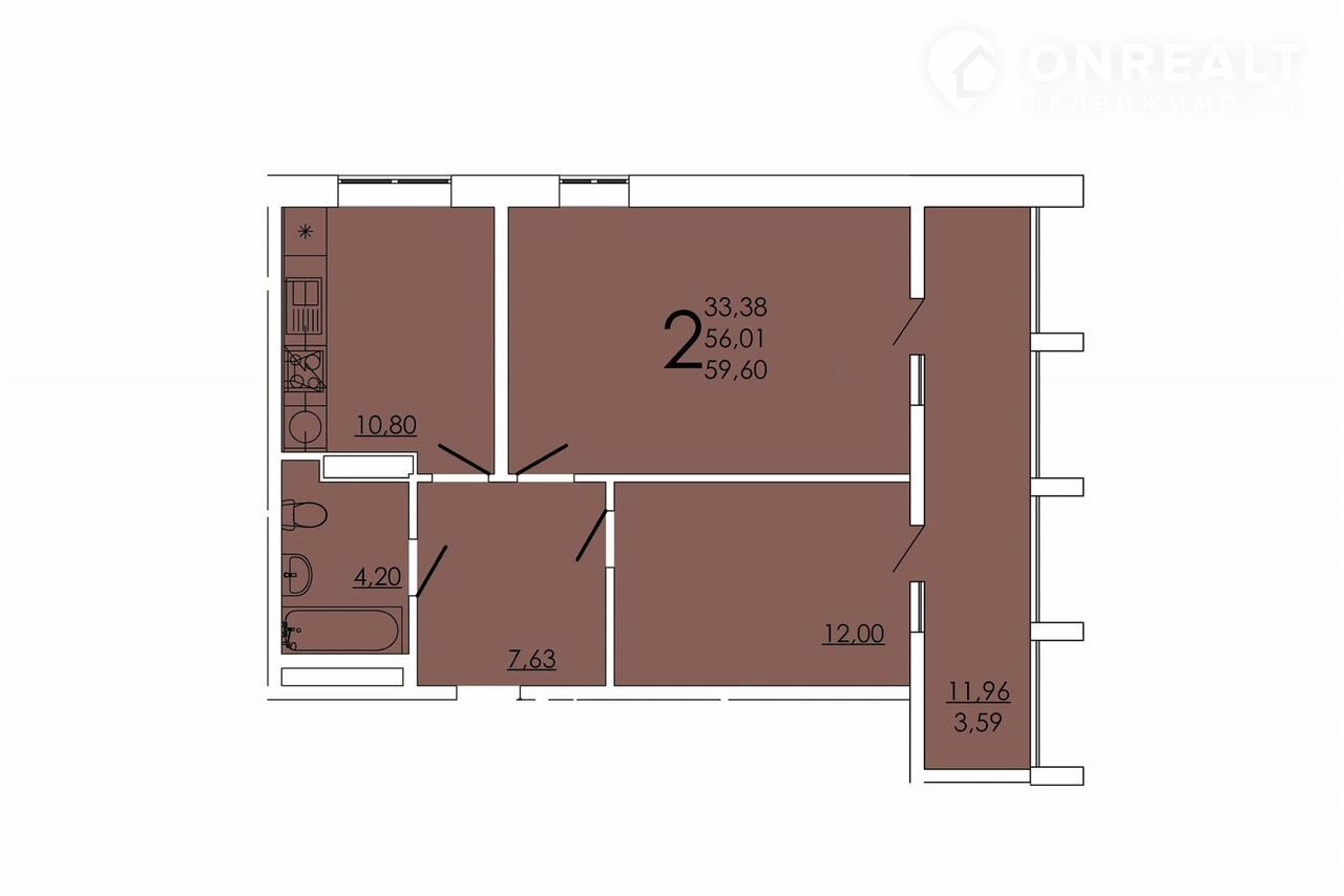 Общая площадь 59.6 м2