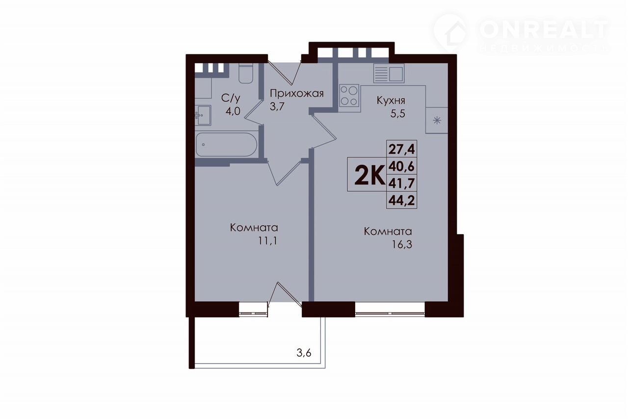 2-комнатная квартира, 41.7 м2, этаж 2 / 9, на продажу в Ростове-на-Дону