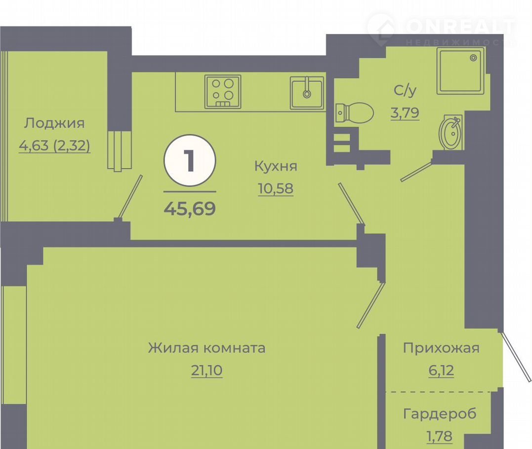 Жилая площадь 21.1 м2