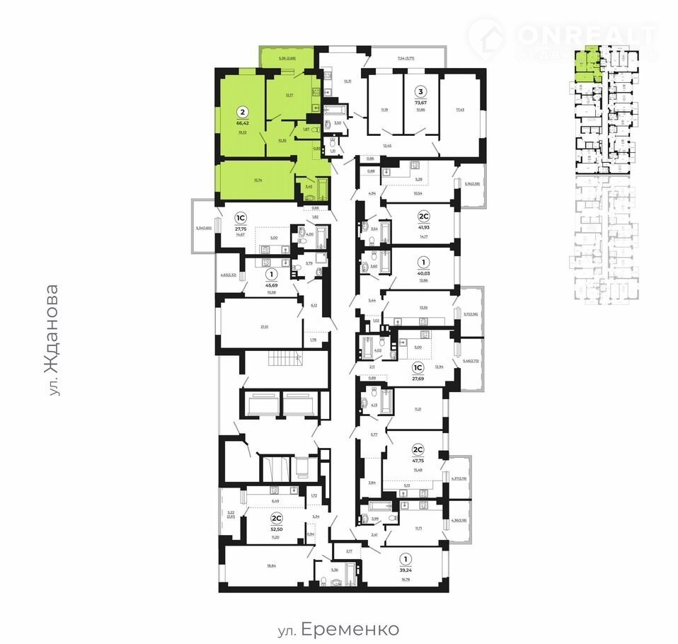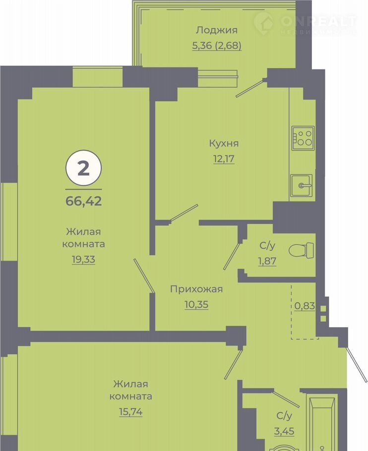 2-комнатная квартира, 65.8 м2, этаж 17 / 24, на продажу в Ростове-на-Дону